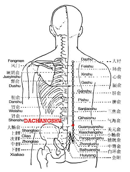 Dachangshu is the place where the Qi of the large intestine infuses into the back.