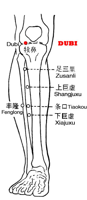 - Oblique insertion in a medial and superior direction, behind the patella 1 to 2 cun,
