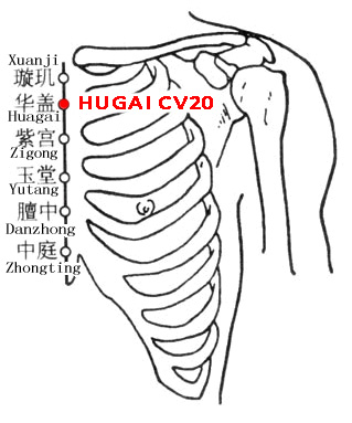 Huagai refers to the emperor’s umbrella. The location of the point corresponds to the lung, which lies above the heart and like an umbrella over it.