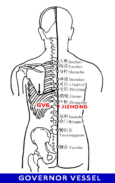 Jizhong, GV6 lies in the depression below the spinous process of T11.