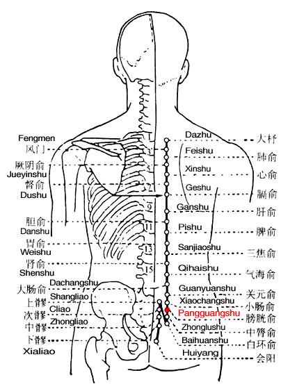Pangguangshu is the place where the Qi of the bladder infuses into the back.
