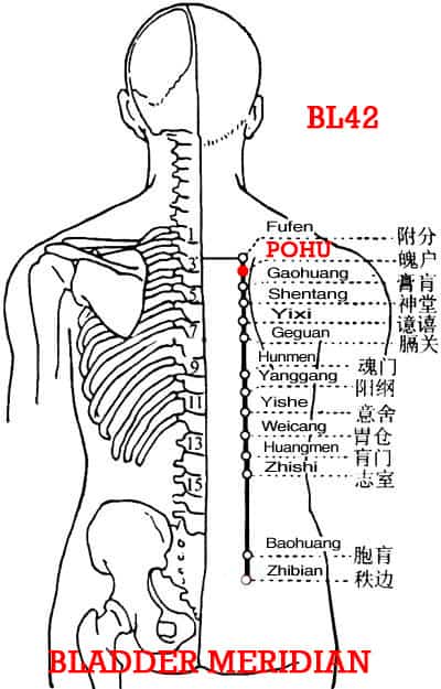 The lung stores the spirit. Pohu is at the level of feishu (BL13), like a door for the Qi of the lung.