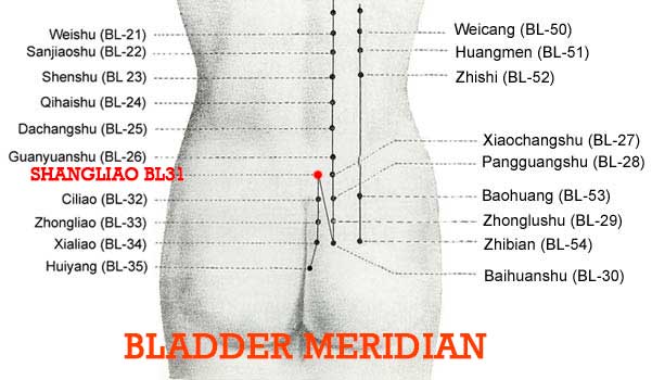 Shangliao is at the first dorsal sacral foramen.