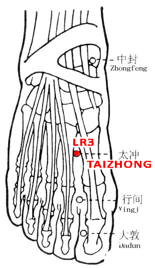 Taichong is on the foot, where the qi of the meridian is abundant. It is an important “pass” in the meridian.