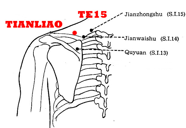 “Heaven” here means “upper”. Tianliao is in a foramen above the shoulder blade.