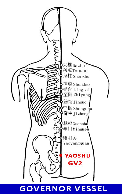 Yaoshu GV2 lies on the lower back, where the Qi of the meridian infuses.