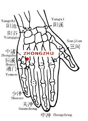 - Zhongzhu is one of the most important distal points for treating ear disorders due to any pathology. Particularly suited to exterior wind and liver disharmony (especially when due to excess): tinnitus, deafness, inflammation of middle ear.