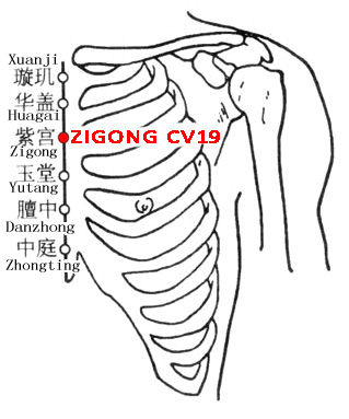 Zigong CV19 is the name of a star and refers to the emperor’s residence. This point corresponds to the heart which is the organ of monarch, and is therefore called Zigong. Purple Palace is the accomodation of the Heart, the Supreme Controller among the officials according to concept of Traditional Chinese Medicine. Purple is the alternative imperial color to yellow in Chinese Culture.As purple was worn by emperors. The role of the Heart is to be to be the space where the spirits can dwell and thus allow the purpose of life to unfold through the other officials. The Heart commands the Blood and purple can be associated with the colour of Blood. (Acupuncture Point compendium, 2014)